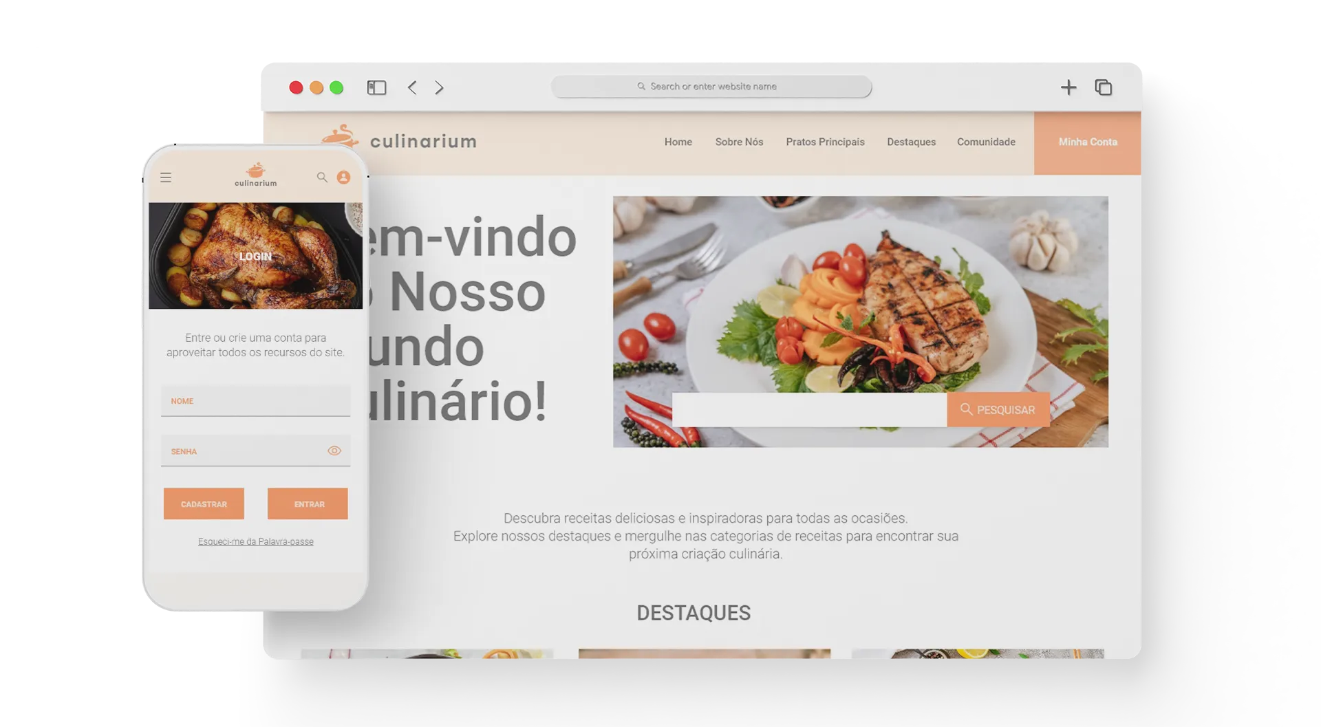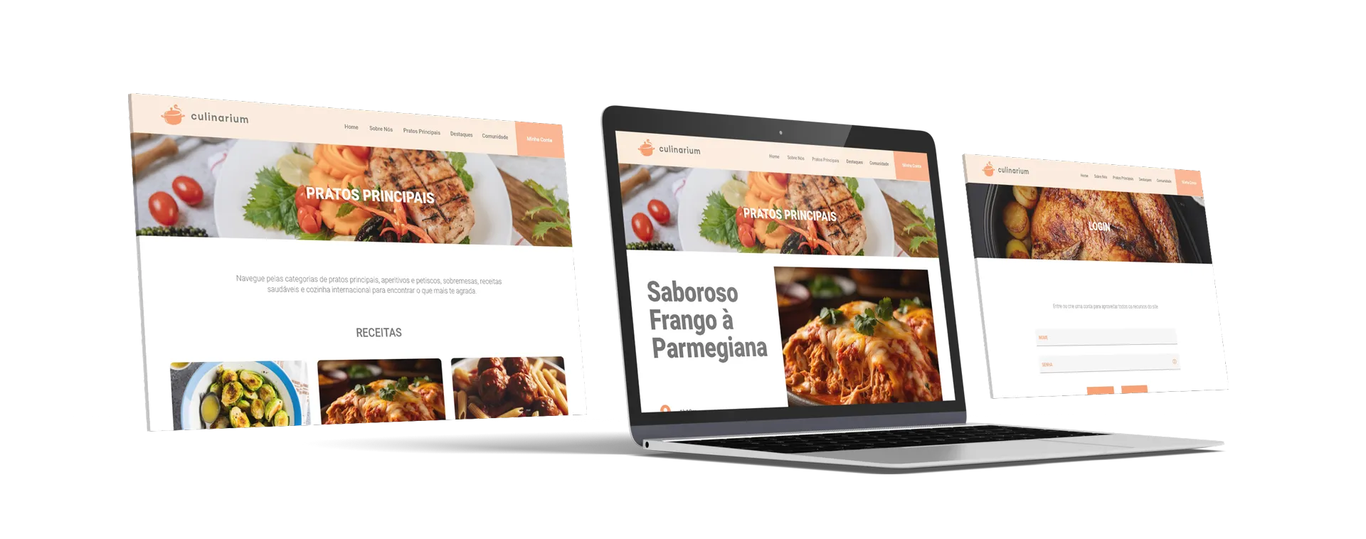 Cada elemento do design foi cuidadosamente planejado para melhorar a usabilidade e maximizar o engajamento, garantindo que a plataforma atenda às necessidades de quem busca aprender novas receitas de forma prática e inspiradora.