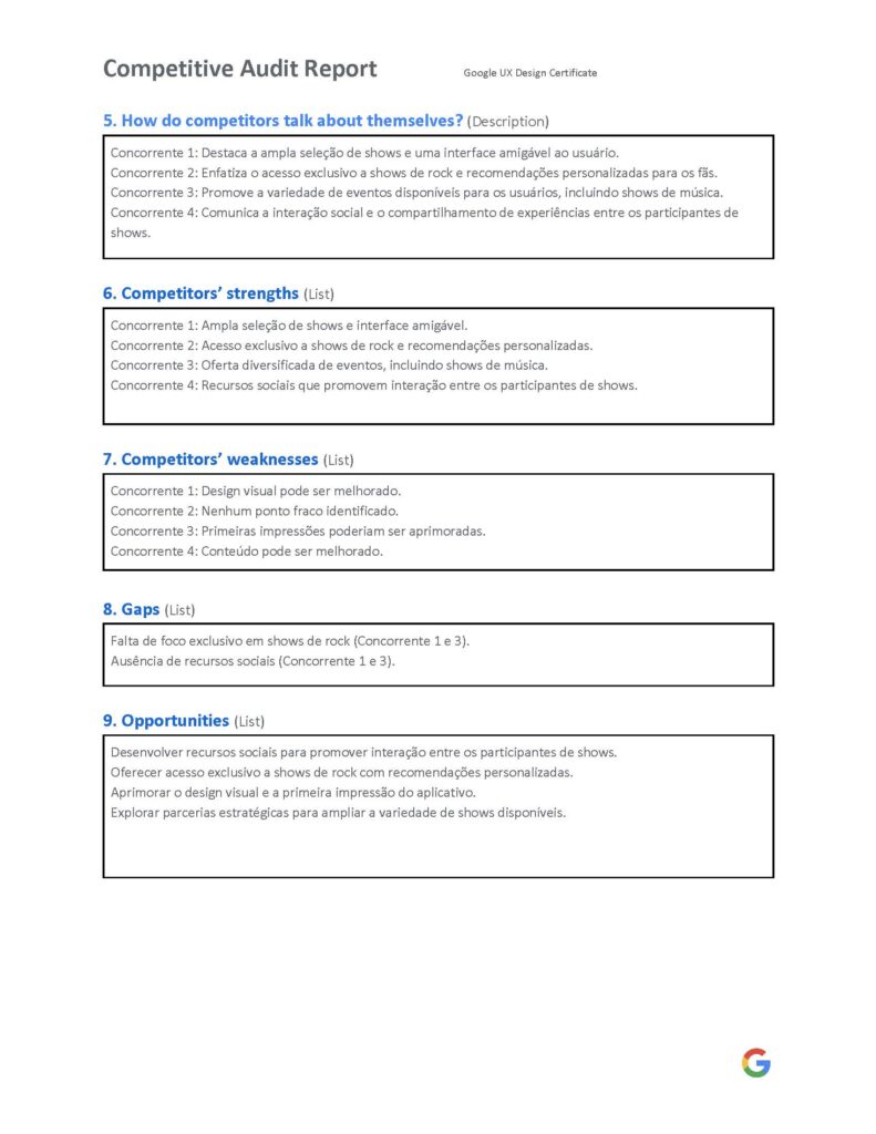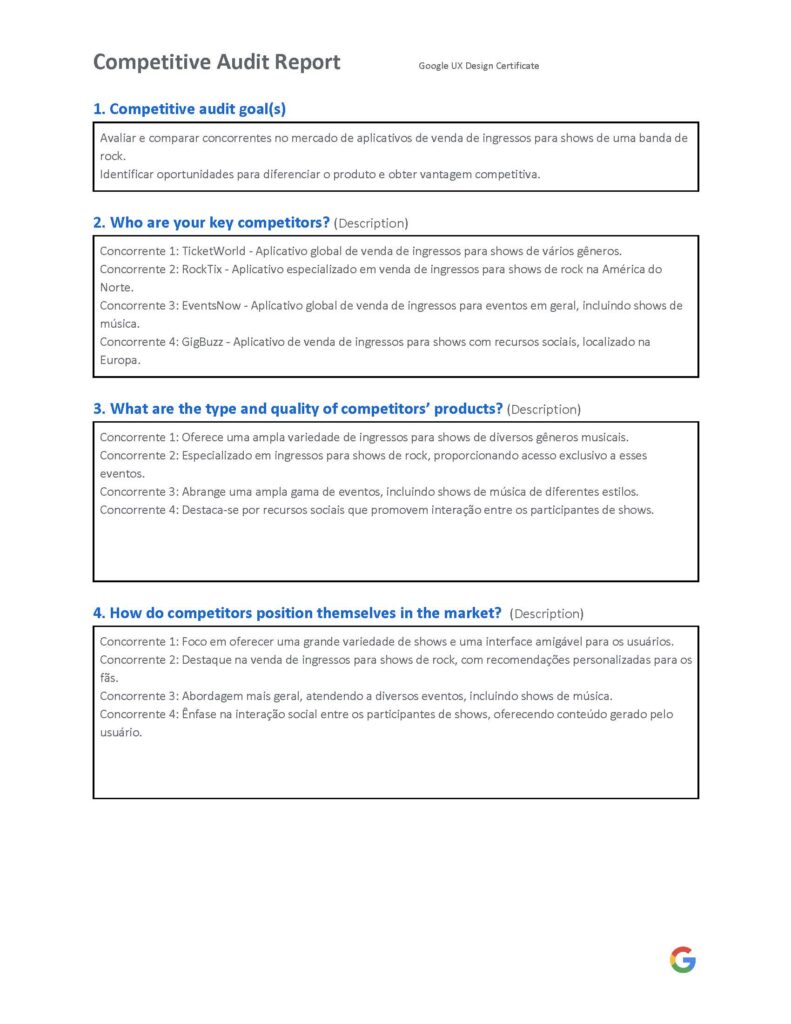 O mercado de ingressos para shows de música é extremamente competitivo e dinâmico, com diversos players consolidados como Ticketmaster e Eventbrite. No entanto, ao realizar uma auditoria competitiva cuidadosa, identificando oportunidades únicas para nos diferenciarmos no nicho específico de shows de bandas de rock.